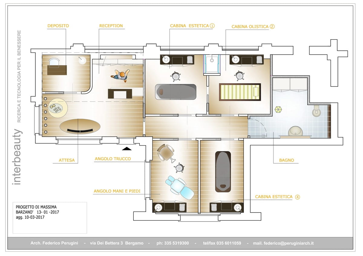 L’intervento ha previsto per la committente un intervento deciso sulla distribuzione delle cabine interne – l’istituto comprende quattro cabine estetiche con trattamenti diversificati inserito in un contesto facilmente accessibile dalla città ma nato per garantire privacy ed esclusività – il centro propone un design accogliente e rassicurante con uso di legni chiari e sbiancati sia per il pavimento che per l’arredo – la ristrutturazione ha previsto un piccolo spazio riservato a fianco della reception per gli aspetti contrattuali e di consulenza consulenza dei nuovi clienti.