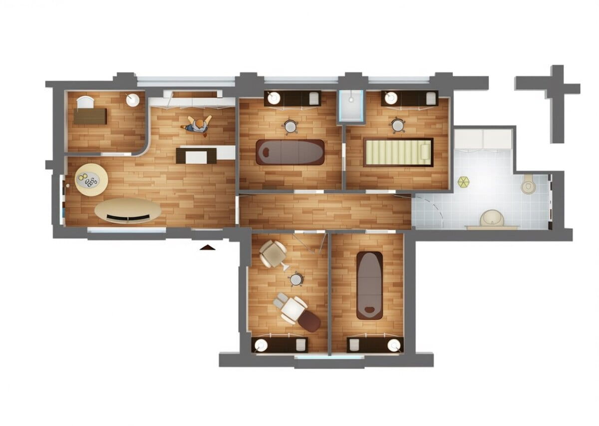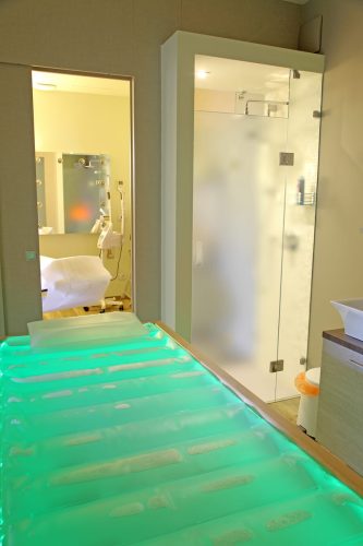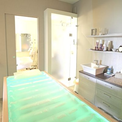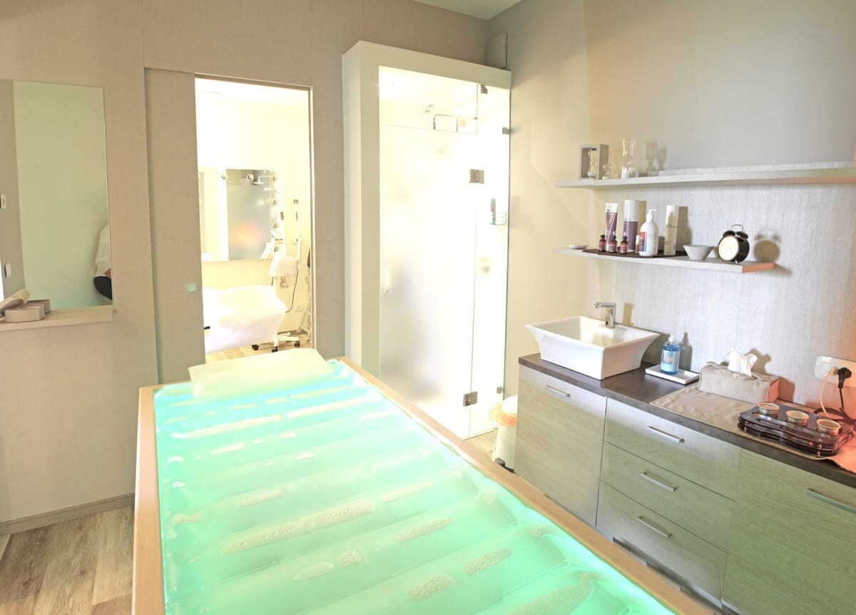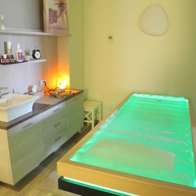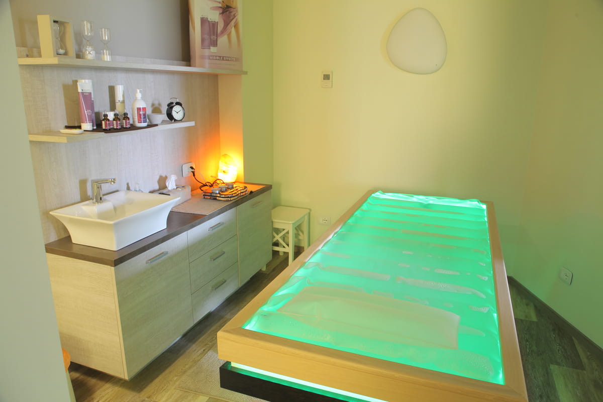 Complessivamente troviamo quattro cabine di cui una benessere con lettino ad acqua (con cromoterapia), delle quattro due sono comunicanti per il massaggio di coppia dotate di doccia duplex con doppio ingresso.
